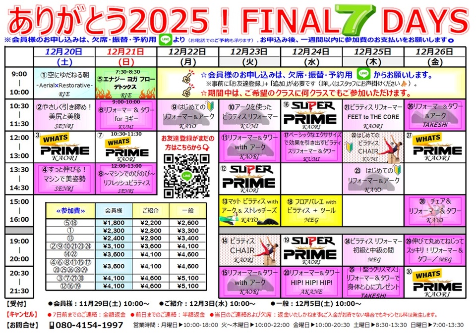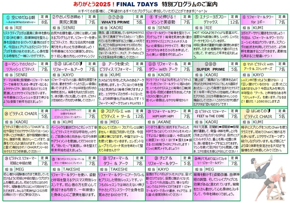 12/20(土)-26(金)の7日間開催「ありがとう2025❗️FINAL 7DAYS」スケジュールをお知らせいたします📢
