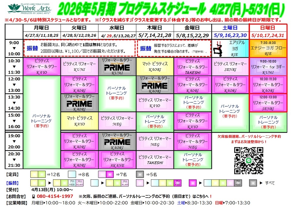 4/27(月)よりスタートいたします、5月期スケジュールをアップしました~😍