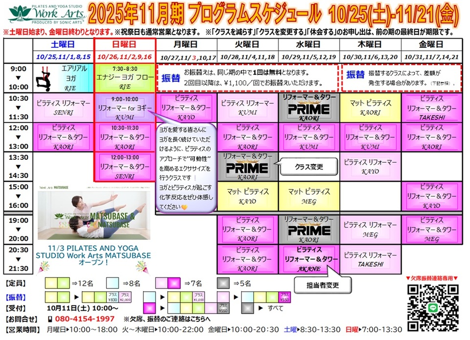 10/25(土)よりスタートいたします11月期スケジュールをアップいたしました❗️