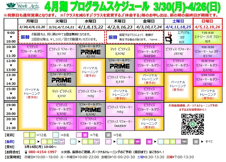 3/30(月)よりスタートいたします、4月期スケジュールをアップしました~😍